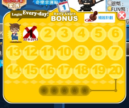 5. 玩家可以進行補簽,補簽沒有限制次數,每次補簽會收取Fun幣,進行補簽時系統會自動對最近沒有簽到的一天進行補簽。