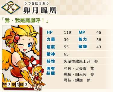※卯月鳳凰和一般的鳳凰相比,除了術技能欄多一格外,固有技能也不相同。