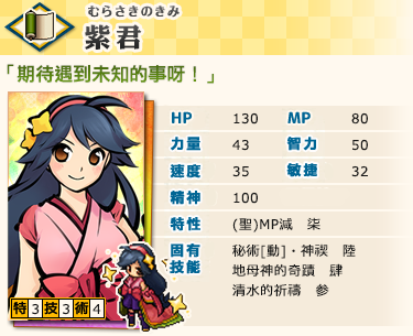 [特性] 在「出陣」一段時間後可以使用(扇専用術技能)