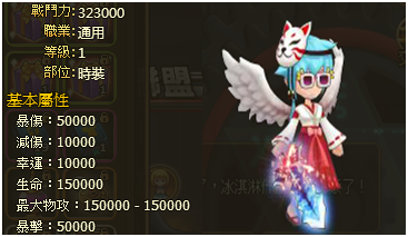 以下為忍者套裝屬性: