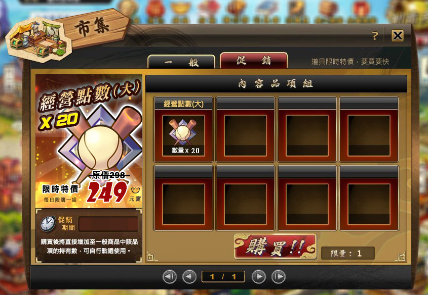 週末限定:經營點數x20 只要249元寶!