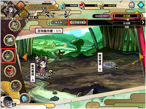 點擊畫面右上方的關卡類型切換功能,可切換至「討伐戰」,參加端午節限定活動