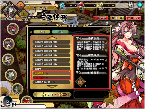 點選左方的「任務」功能鈕→「主線任務」→選擇「活動」任務類別,即可找到端午活動任務說明。