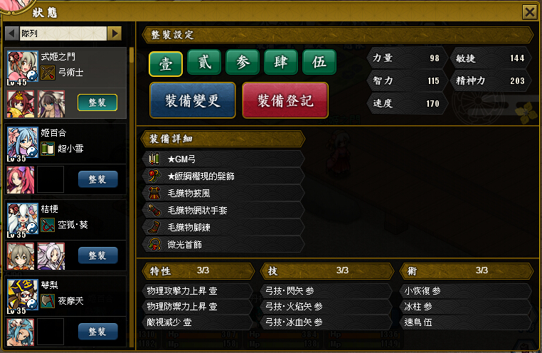 ※角色狀態頁面新增「整裝」按鈕,同一角色最多可儲存5種「特性、技、術、裝備」組合。