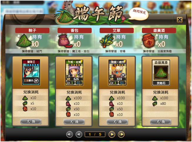 1. 端午節兌換道具僅在活動時間內生效,活動時間結束後系統將回收遊戲內道具,請玩家提早兌換獎勵。