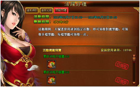 【活動說明】:活動期間內,天賦書使用達到指定次數,即可領取對應獎勵。