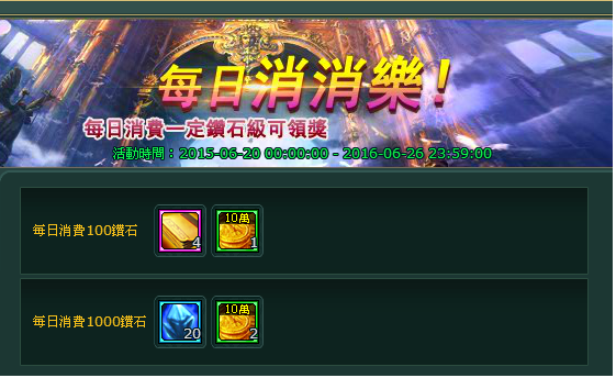 活動內容:每日消費一定鑽石即可領獎。