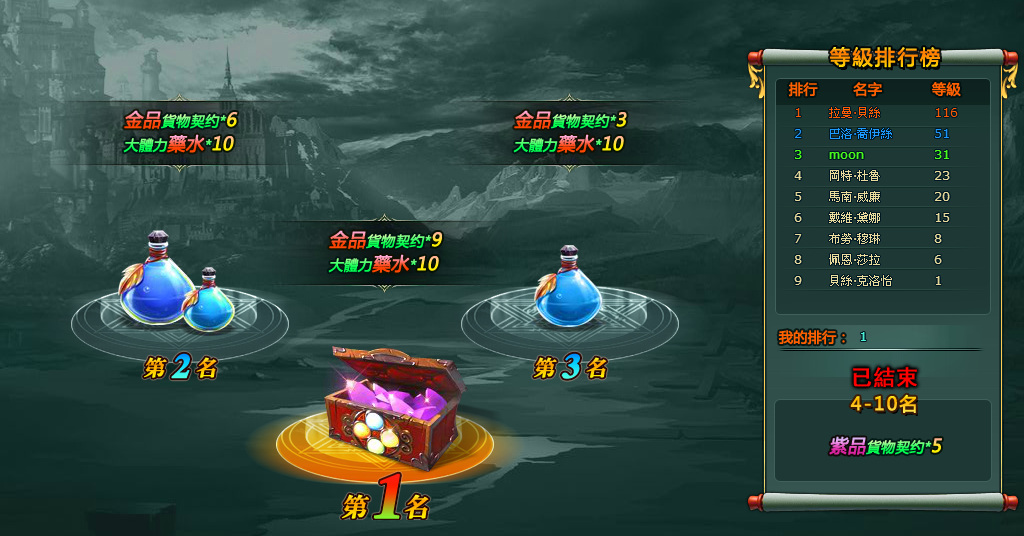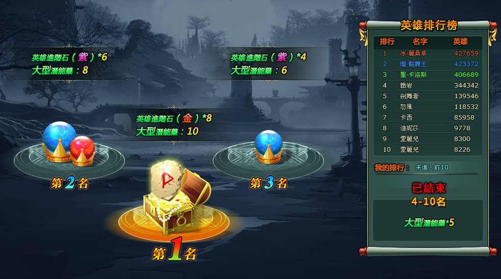 第一名:英雄進階石(金)*8、大型潛能藥*10