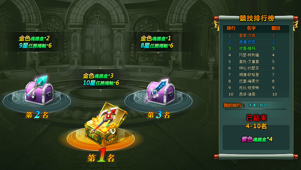 第一名:金色器魂盒*3、10星任務卷軸*6