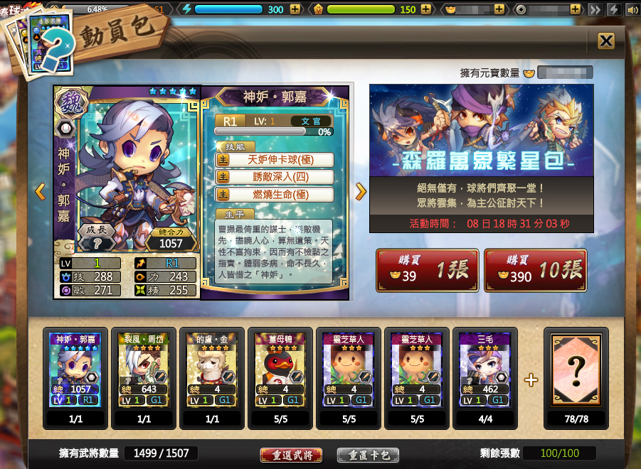 想收集曾經錯過的武將嗎?一次入手趁現在!動員包中擁有超多武將任你搭配,想怎麼抽就怎麼配!快來試試手氣吧!