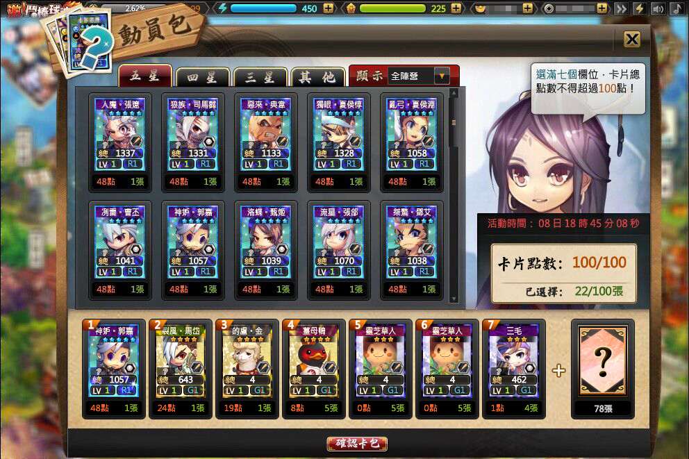 2. 想抽幾次就抽幾次,隨時可重選武將重新配包!