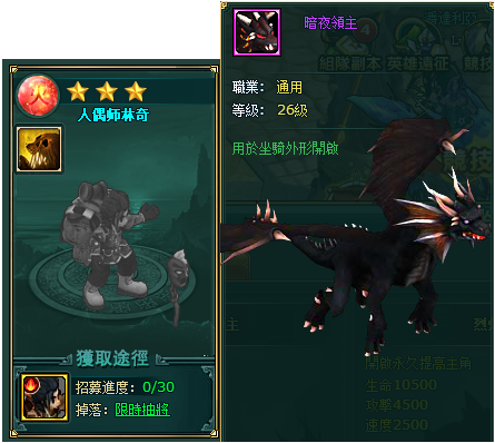 | 3000NT | 水之魔鋼*20、火之魔鋼*20、土之魔鋼*20、黃金虎/魔熊(坐騎)*1 |