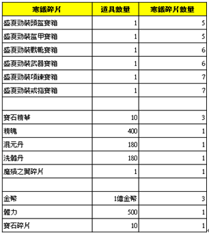 【活動內容】:使用寒鐵碎片,殘舊的名卡可於神器祭壇兌換以下的獎勵。