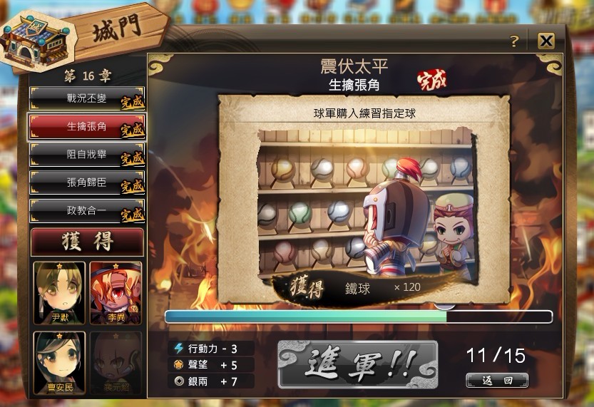 週六限定「城門進軍」球、銀兩獲取量提高,讓各位君主可以隨時存球抽神卡、存錢強化神將喔!