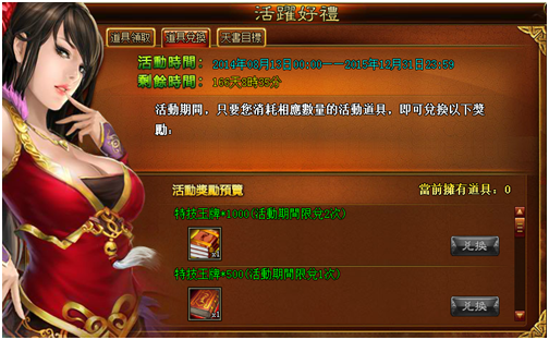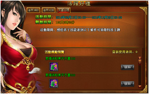 【活動說明】:活動期間內,可使用特技玉牌兌換活動道具。