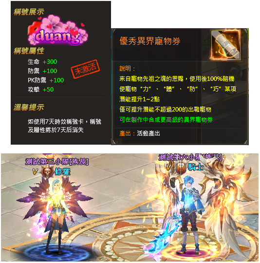 | 500 | 紋章境界丸*25、寵物潛能卷軸*7、duang稱號卡*1(7日) |