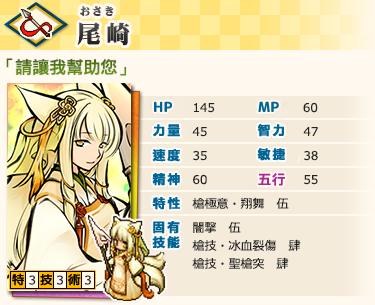 尾崎的特性「槍極意・翔舞」具有以下效果: