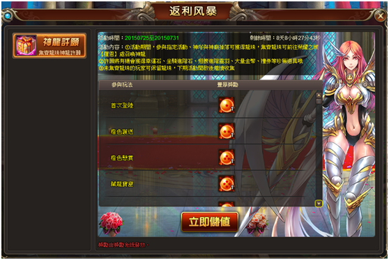 1.活動期間,參與指定活動可獲得龍珠,集齊龍珠可前往榮耀之城【羅恩】處召喚神龍;