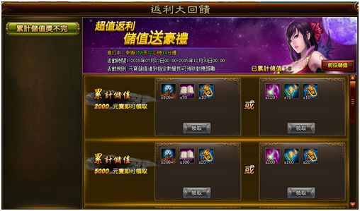 3. 活動獎勵將儲值完成後,玩家自行於遊戲介面領取。