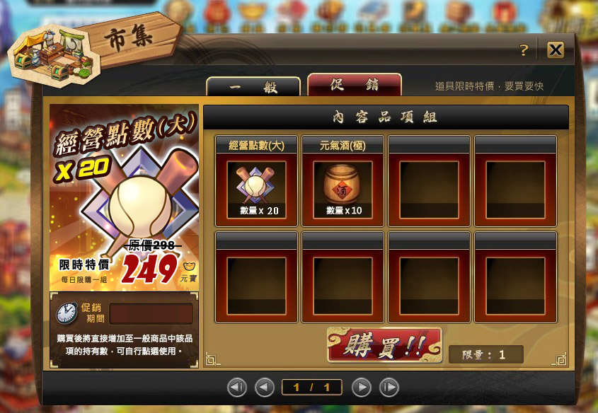 《激鬥棒球魂》感謝眾多玩家的熱情支持,本週進軍機率獲得「西瓜」、球場有機率掉落強化道具等,為了讓玩家更容易兌換獎勵,官方特別推出市集限時特價活動,讓所有君主都能買到賺到,每種超值組合每日各限購1組,不要錯過特賣時間囉,要買要快!!
