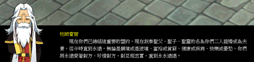 求完婚後,必須進行婚禮才會正式的結為夫妻哦!
