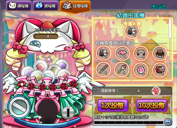 結婚扭蛋上架兩星期,但本周上的結婚炫裝只上架一星期,下周會上另一套結婚炫裝~想要蒐集的人要好好把握囉~