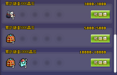 儲值可獲得結婚喵幣、結婚炫裝禮包(隨機一件)、寵物雙雙與對對(普通)、結婚禮包(隨機開出一個結婚相關獎勵,結婚炫裝或寵物-雙雙與對對或坐騎-心心相印)
