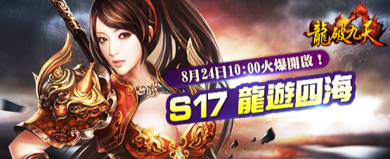 【龍破九天】 S17 龍遊四海 將於8月24日10點火爆開機,同時有大量好康活動以及爭霸活動等你參與喔!!