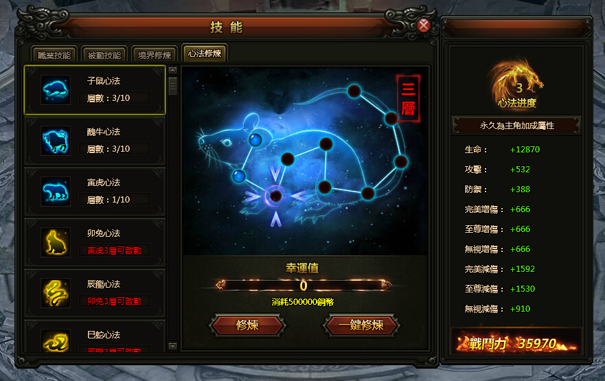 3. 開放技能 - 心法修練