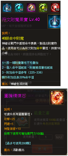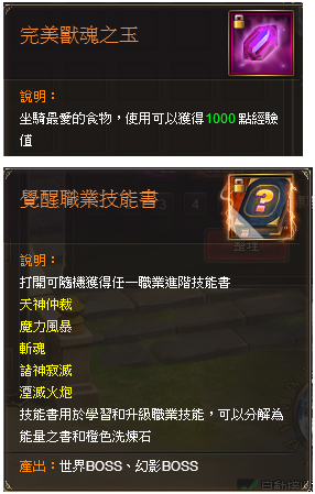 | 1,500 | 異界寶石碎片*4、中級強化寶石*4、中級強化水晶*2、各職業附魔果實Lv.40*3 |
