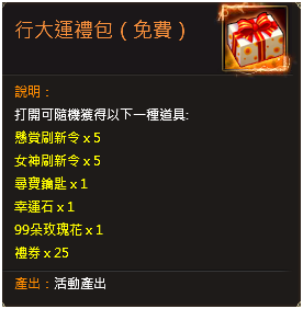 | 10,000 | 尋寶鑰匙*30、圖騰水晶福袋*50、完美獸魂之玉*2、圖騰精煉石*2 |