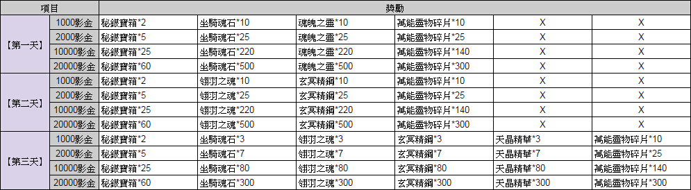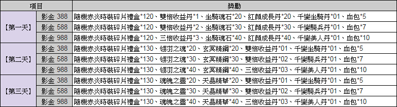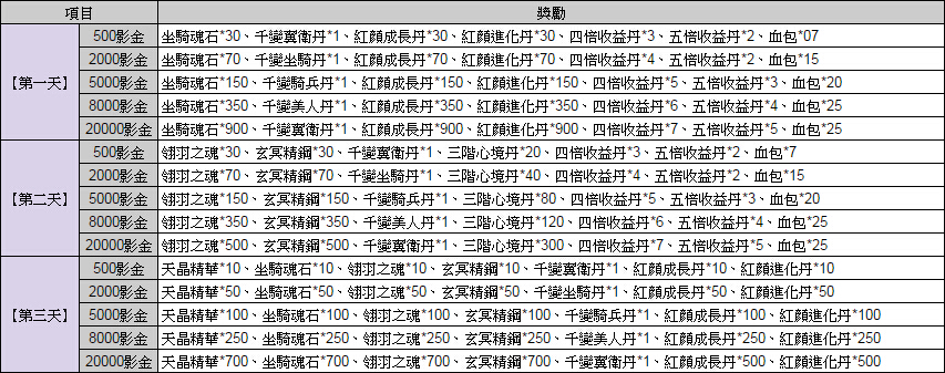 開服三日登入獎勵