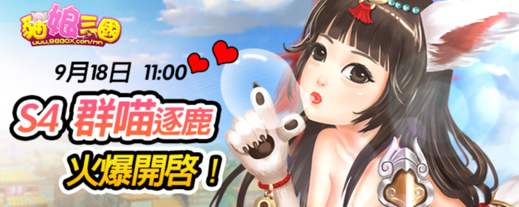 貓娘三國S4 群喵逐鹿 將於9月18日11點火爆開機,同時有大量開服活動等你參與喔!!