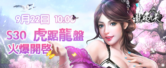 【龍破九天】 S30 虎踞龍盤 將於9月22日10點00分火爆開機,同時有大量好康活動以及爭霸活動等你參與喔!!