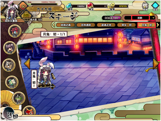 點擊畫面右上方的關卡類型切換功能,可切換至「活動」,參加中秋節限定活動