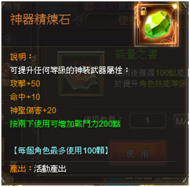 | 3,000 | 高級能量之書*20、精良幸運石*2、龅牙仔變身卡*1、神器之魄*50 |
