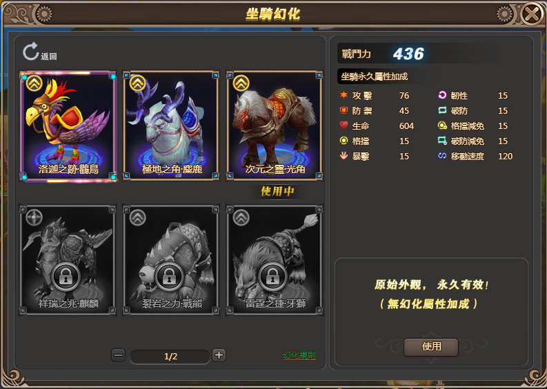 - 進階類外觀無幻化屬性加成,已進階的外觀可以直接使用。