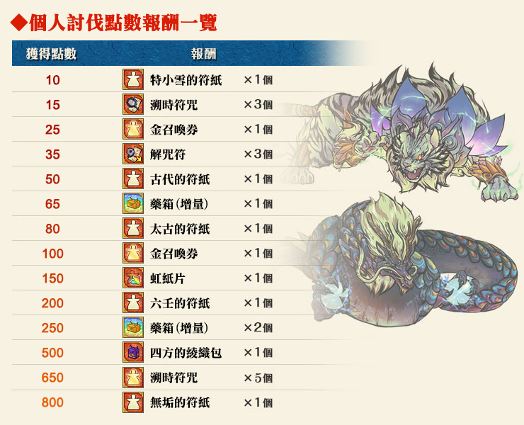 活動報酬也分為「個人討伐」及「共同討伐」2種報酬,一起努力衝高討伐點數吧!