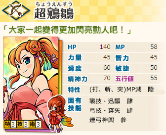 「超鵷鶵」的數值、可裝備物品、基礎數值、加成點數、特/祭/術欄位都和「鵷鶵」相同,持有的新技能如下: