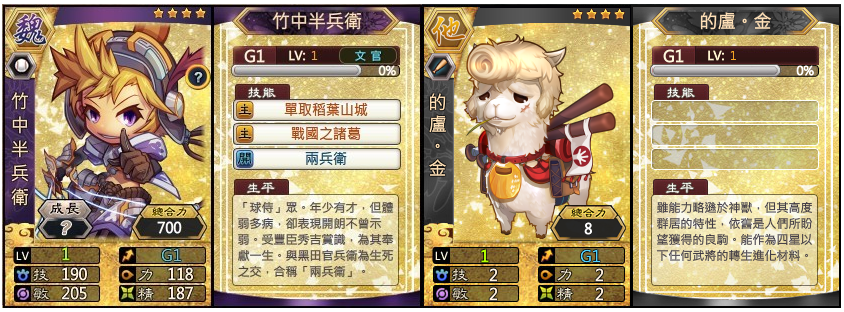 究極金卡武將 - 竹中半兵衛 金卡轉生道具 - 的盧。金