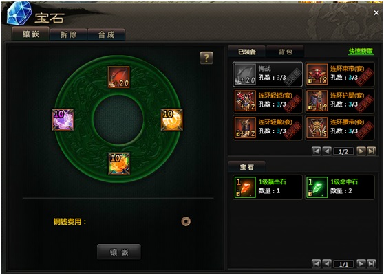 寶石鑲嵌系統是遊戲特殊系統之一,他可以在根據不同裝備鑲嵌不同寶石類型,以增加玩家屬性。