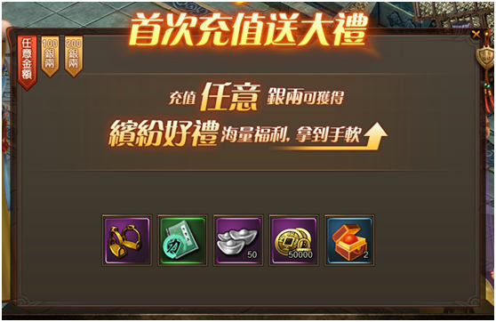 | 200銀兩 | 開服創角後至玩家每日首充獎勵30次後結束 |