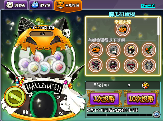 維修後至11/26維修前,線上獎勵第六檔銅喵幣替換為道具「南瓜」