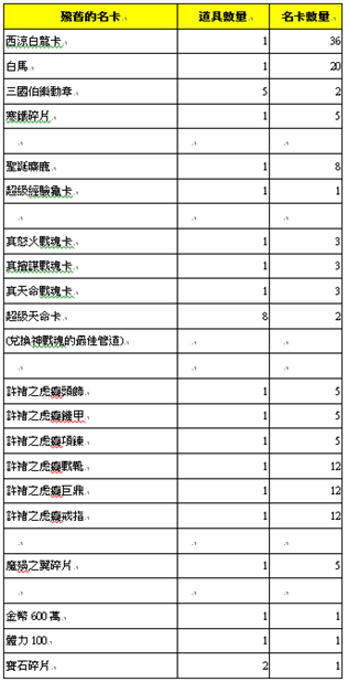 【活動內容】:使用寒鐵碎片,殘舊的名卡可於神器祭壇兌換以下的獎勵。