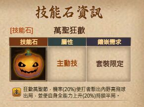 若攻打涼州球場成功則有機率獲得限定技能石-萬聖狂歡,除了限定技能石以外也有機會獲得其它技能石,且當日攻打越多次球場則獲得技能石的機率也會進而提升哦!