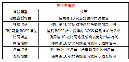 2. 神秘塔羅牌一經使用,即開始計算增益次數和時效,敬請留意使用。