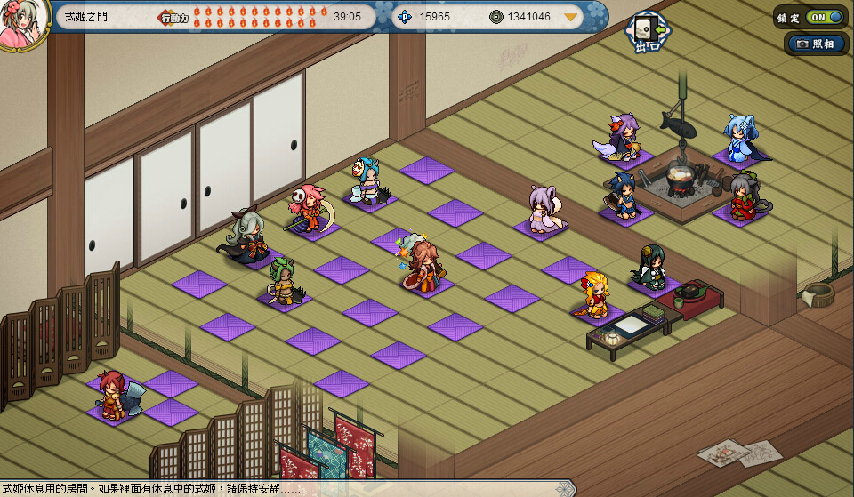 ※只要在「休息的房間」購買一次「坐墊」後,就能讓最多30名式姬休息。