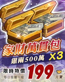 《激鬥棒球魂》感謝眾多玩家的熱情支持,官方特別推出市集限時特價活動,讓所有君主都能買到賺到,市集限時特價家財萬貫包,每人每日各限購1組,要買要快!!