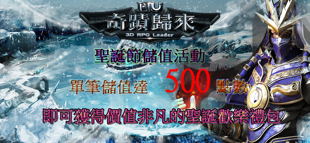 活動條件:在活動期間內單筆儲值超過500點以上,皆可獲得以下實用聖誕歡樂禮包。