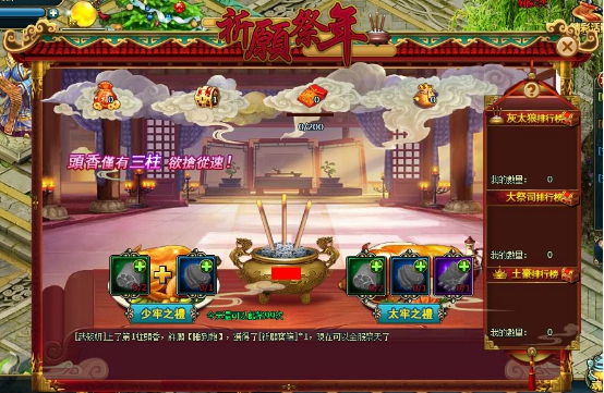 2、新年紅包:每次祈願祭年活動成功,全服玩家均可獲得1個寶箱;